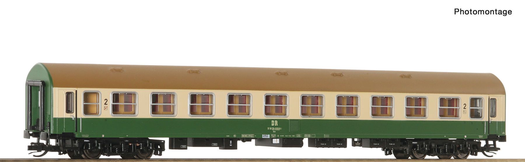 Innenbeleuchtung Artikelnummer 4080001 Mit Inneneinrichtung ausgestattet Schacht NEM 358 mit KK-Kinematik Innenbeleuchtung Nachrüstbar Länge über Puffer 204 mm Hersteller: Roco Reisezugwagen 2. Klasse Bauart Y/B-70, Gattung Bme, der Deutschen Reichsbahn. Art.-Nr. 6280033, 6280034: Geänderte Betriebsnummer Hersteller: Roco