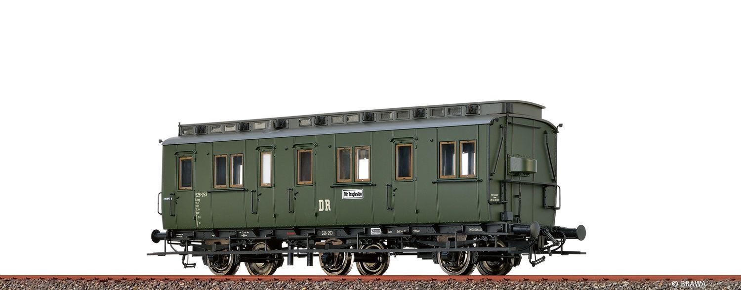 H0 Abteilwagen B3tr DR $Feine Bedruckung und Lackierung $Für Innenbeleuchtung vorbereitet $Inneneinrichtung eingebaut $Viele extra angesetzte Teile$$Hinweis zu Best.-Nr. 45490 - 45495: Als Wechselstrom-Tauschradsätze empfehlen wir die Radsätze mit der Best.-Nr. 2187. Bitte beachten Sie, dass nur die beiden äußeren Radsätze getauscht werden sollten. Der mittlere Radsatz darf nicht getauscht werden und ist für einen Kurvenlauf in R360 zwingend notwendig. Hersteller: Brawa