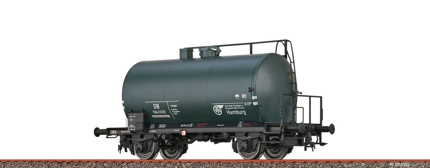 H0 Leichtbaukesselwagen Uerdingen Z [P] "VTG" DB $Drehgestell mit Dreipunktlagerung$Extra angesetzte Achslagerdeckel$Extra angesetzte Federpakete$Extra angesetzte Bremsanlage$Fein gravierte Drehgestelle$Bremsbacken in Radebene$Extra angesetztes Achsbremsgestänge$Frei stehende Griffstangen Hersteller: Brawa