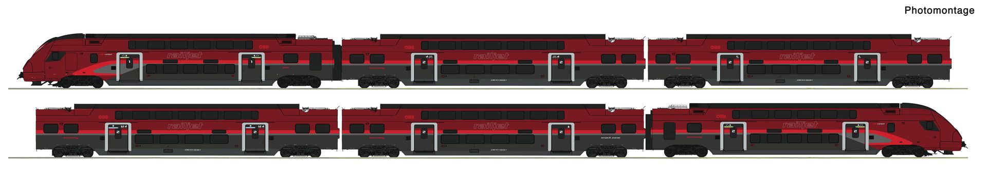 H0 6er Set Railjet Doppelstock ÖBB DC-Snd. + Innenbeleuchtung Hersteller: Roco