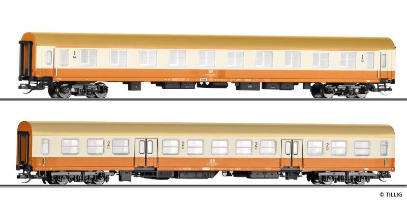 TT Reisezugwagenset „Städteexpress“ der DR, bestehend aus einem Reisezugwagen 1. Klasse und einem Reisezugwagen 2. Klasse, Bauart Halberstadt, Ep. IV