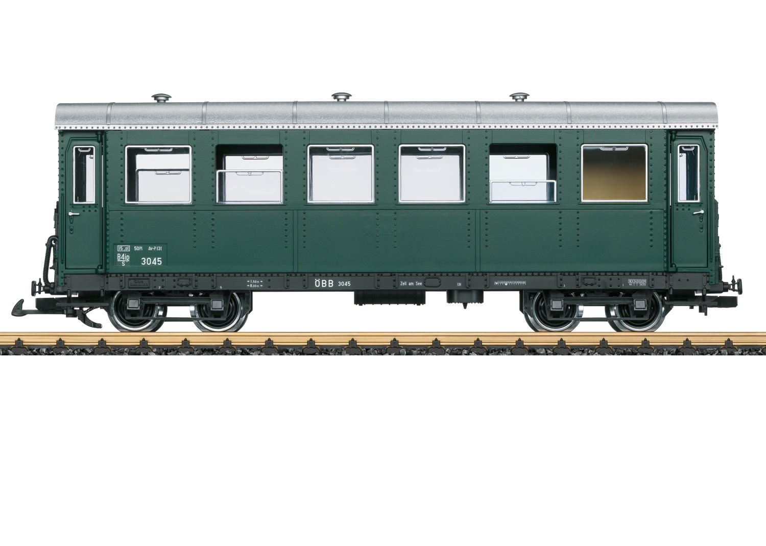 Mit diesem Personenwagen hat es eine besondere Bewandtnis: Er wurde in den 1970er-Jahren hauptsächlich als Begleitwagen in Güterzügen auf der Pinzgaubahn eingesetzt. So konnten Rangierer und andere Bahnmitarbeiter einigermaßen bequem mitfahren und waren immer schnell zur Stelle. Im Güterverkehr wurden damals auf den Schmalspurbahnen verschiedene Wagentypen eingesetzt, unter anderem gedeckte und offene Güterwagen, aber auch Rungenwagen um sperrige Güter zu transportieren. Aber auch normalspurige Güterwagen wurden auf Rollwagen verladen und auf der Schmalspurstrecke transportiert, so konnte man das Umladen der Güter vom normal- zum schmalspurigen Güterwagen einsparen und den Betriebsablauf wesentlich rationeller gestalten. Modell eines Personenwagens der 2. Klasse der ÖBB. Originalgetreue Farbgebung und Beschriftung der Epoche IV, so wie der Wagen auf der Pinzgauer Lokalbahn im Einsatz war. Komplett nachgebildete Inneneinrichtung. Türen zum Öffnen. Metall-Scheibenradsätze. Länge über Puffer 46 cm. Die passende Lok der Reihe 2095 ist unter der Artikelnummer 22963 erhältlich, ein weiterer Güterwagen unter der Nummer 43621 und ein dazu passender Rollwagen unter der Nummer 49184.