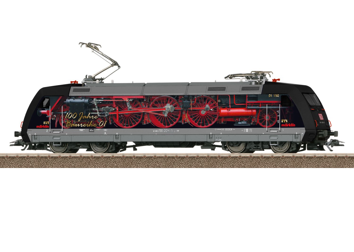 Vorbild: Schnellzuglokomotive Baureihe 101 der Deutschen Bahn AG (DB AG). Werbegestaltung 100 Jahre BR 01. Betriebszustand 2025. Modell: Mit Digital-Decoder und umfangreichen Geräuschfunktionen. Geregelter Hochleistungsantrieb. 4 Achsen angetrieben. Haftreifen. Fahrtrichtungsabhängig wechselndes Dreilicht-Spitzensignal und 2 rote Schlusslichter konventionell in Betrieb, digital schaltbar. Fernscheinwerfer separat schaltbar. Führerstandbeleuchtung digital schaltbar. Spitzenlicht an Lokseite 2 und 1 jeweils separat digital abschaltbar. Wenn Spitzensignal an beiden Lokseiten abgeschaltet ist, dann beidseitige Funktion des Doppel-A-Lichts. Beleuchtung mit wartungsfreien warmweißen und roten Leuchtdioden (LED). Mit Pufferspeicher zur Überbrückung von kurzen stromlosen Stellen. Kulissengeführte Kupplung. Länge über Puffer 21,9 cm. Dieses Modell finden Sie in Wechselstromausführung im Märklin H0-Sortiment unter der Artikelnummer 39479.