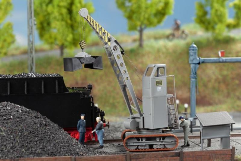 Bausatz. Der elektrisch angetriebene Raupenkran RK3, auch als "Bleichert-Kran" bekannt, wurde in Leipzig gebaut. Einzelne Exemplare sind auch heutzutage noch zum Bekohlen von Dampfloks und für Verladearbeiten im Einsatz. Das Modell mit wahlweise unterschiedlich hohen Fahrerhäusern kann dem Vorbild entsprechend mit beiliegenden Schildern als Kran des BW Bautzen dekoriert werden. Originalgetreue, aufwändig bedruckte Warnbalken und -hinweise am drehbaren Aufbau. 118 x 32 x 38 mm