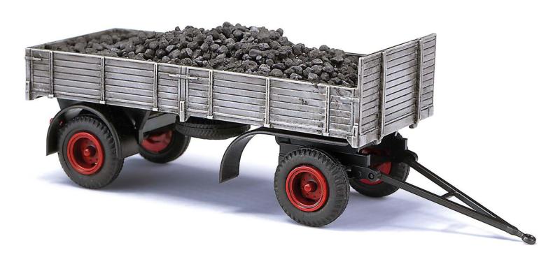 Anhänger mit Kohleladung in aufwändig realistisch gestalteter Verschmutzung. Passende Pendants hierzu sind die Modelle Multicar M26 (Art.-Nr. 42231) und Anhänger HW 60 (Art.-Nr. 53015).