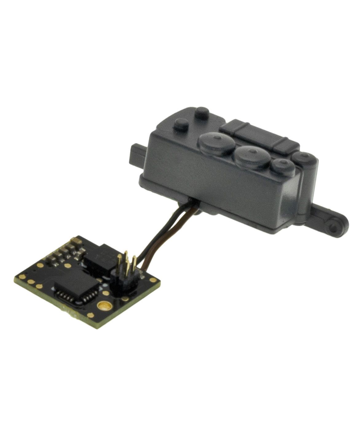 Bereichern Sie Ihre CarMotion-Anlage mit Sound in den Fahrzeugen. Die nachrüstbaren Soundmodule sind fahrzeugspezifisch und daher mechanisch, farblich und akustisch auf die jeweiligen Typen angepasst. Sie spielen Motorgeräusche vom Starten und Stoppen des Motors sowie diverse fahrsituative Geräusche wie Schaltvorgänge, Bremsenquietschen und – je nach Fahrzeugtyp – auch Rückfahrwarnsignal ab. Hupe – und falls vorhanden – auch Martinshorn sind schaltbar. Der Motorsound ist in der Lautstärke einstellbar. Die schaltbaren bzw. einstellbaren Sounds lassen sich per Fernbedienung, DCC-Befehl oder per Infrarotbefehl bzw. Magnetfolge betätigen. Die Platine des Soundmoduls wird einfach mittels eines vierpoligen Steckers mit der Fahrzeugplatine verbunden und verschraubt. Die bisherigen linksseitigen Anbauteile wie Auspuff, Lufttanks usw. werden durch die neuen Anbauteile, die den Lautsprecher enthalten, ersetzt. Bitte beachten Sie, dass Fahrzeuge ohne die vierpolige Erweiterungsbuchse nicht mit einem Soundmodul ausgestattet werden können. Leistung 250 mW, Effizienz 81 dBA, Frequenzbereich ca. 800 – 10 kHz. Passende Fahrzeuge: 8041, 8114, 8115. L 2,5 x B 1,2 x H 1,1 mm