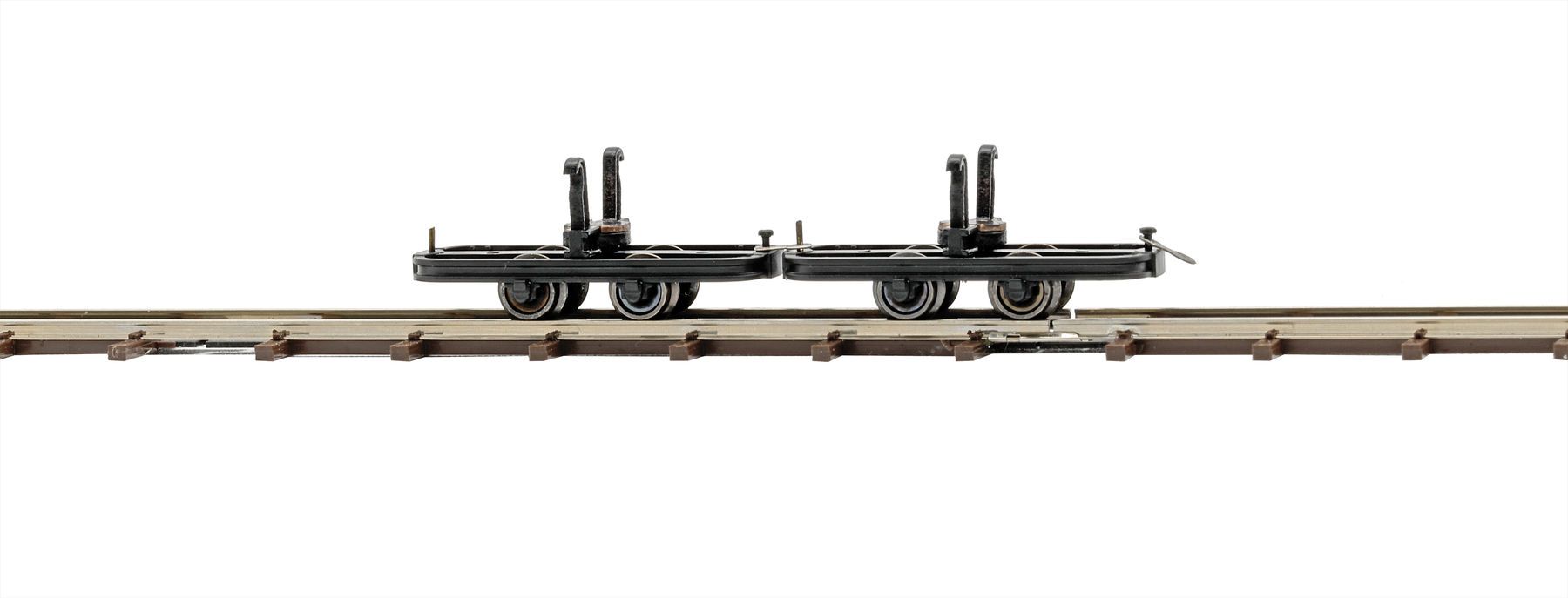2 zweiachsige Rungenwagen zum Transport von z.B. Langgut. Länge je Wagen: 29 mm.