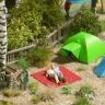 Nach der anstrengenden Fahrradtour zum Zeltplatz ruht sich das Pärchen erst mal aus. Mit 2 liegenden Figuren, großer Liegedecke, 2 Fahrrädern mit filigranen Speichen, Zelt und Holzstapel.