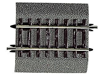 Gerades Gleis G¼ mit Bettung. Länge 57,5 mm (Viertel Standardlänge). Schienenprofilhöhe 2,1 mm Hersteller: Roco