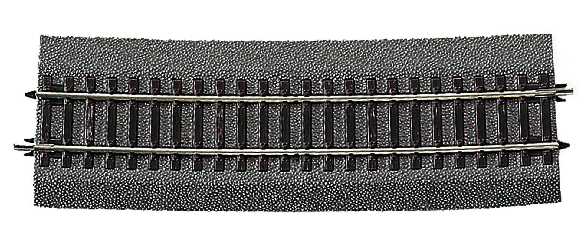 Radius 1962 mm, Bogenwinkel 5°. 2 Stück bilden den Gegenbogen zu 10°-Weichen/Kreuzungen. Schienenprofilhöhe 2,1 mm Hersteller: Roco