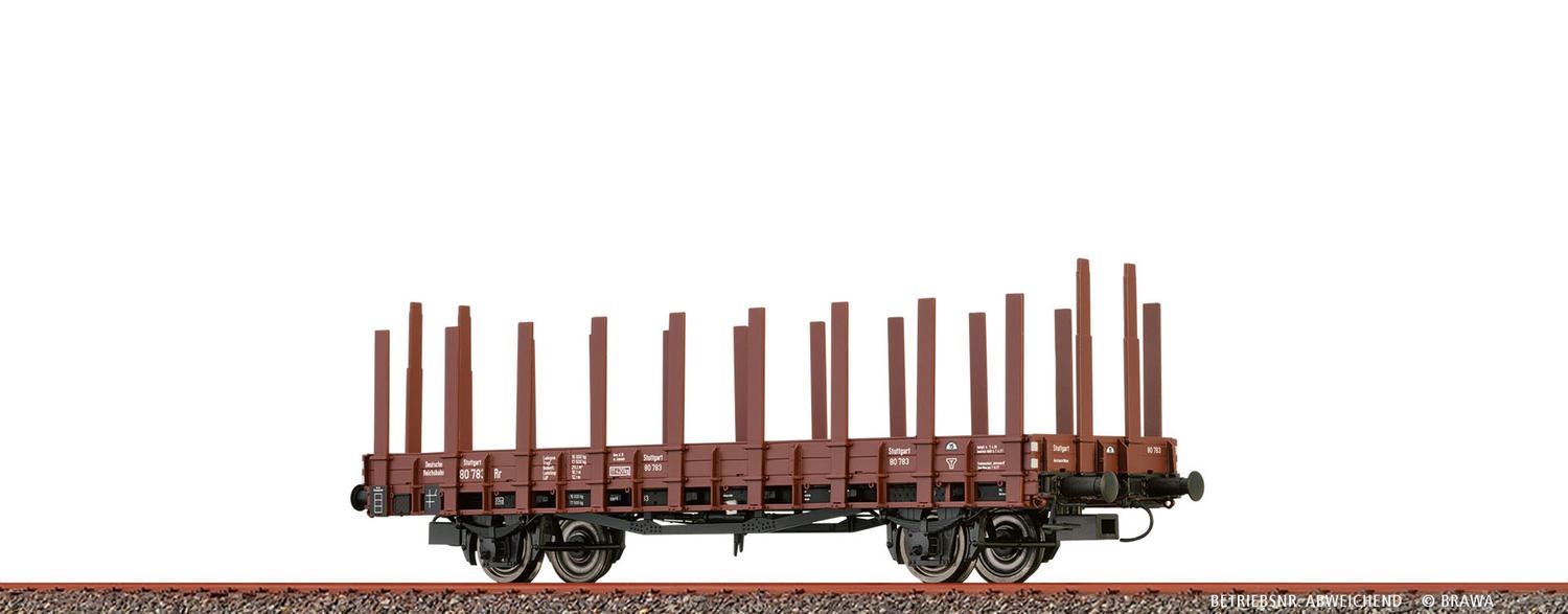 H0 Rungenwagen Rr DRG, Epoche II Betriebsnummer: Stuttgart 80 765 LüP: 139,1mm Kurzkupplungskinematik 2187 Tauschsatz für Wechselstrom MODELLDETAILS: Achshalter aus geprägtem Blech; Extra angesetzte Federpakete;Filigrane Nachbildung der Radlager;Extra angesetzte Bremsumsteller;Kurzkupplungskinematik nach NEM-Norm;Vorbildgerechter Nachbau des Unterbodens;Räder auch innen profiliert Hersteller: Brawa