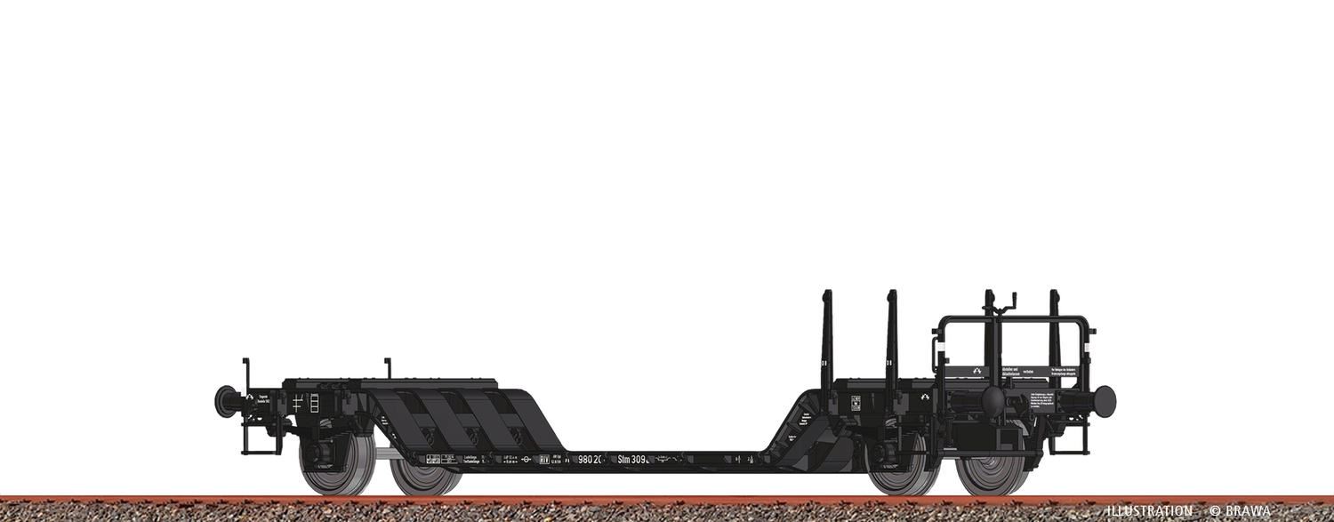 H0 Tiefladewagen Stm 309 DB, Epoche III Betriebsnummer: 980 208 LüP: 140,7mm Kurzkupplungskinematik 2187 Tauschsatz für Wechselstrom Hersteller: Brawa