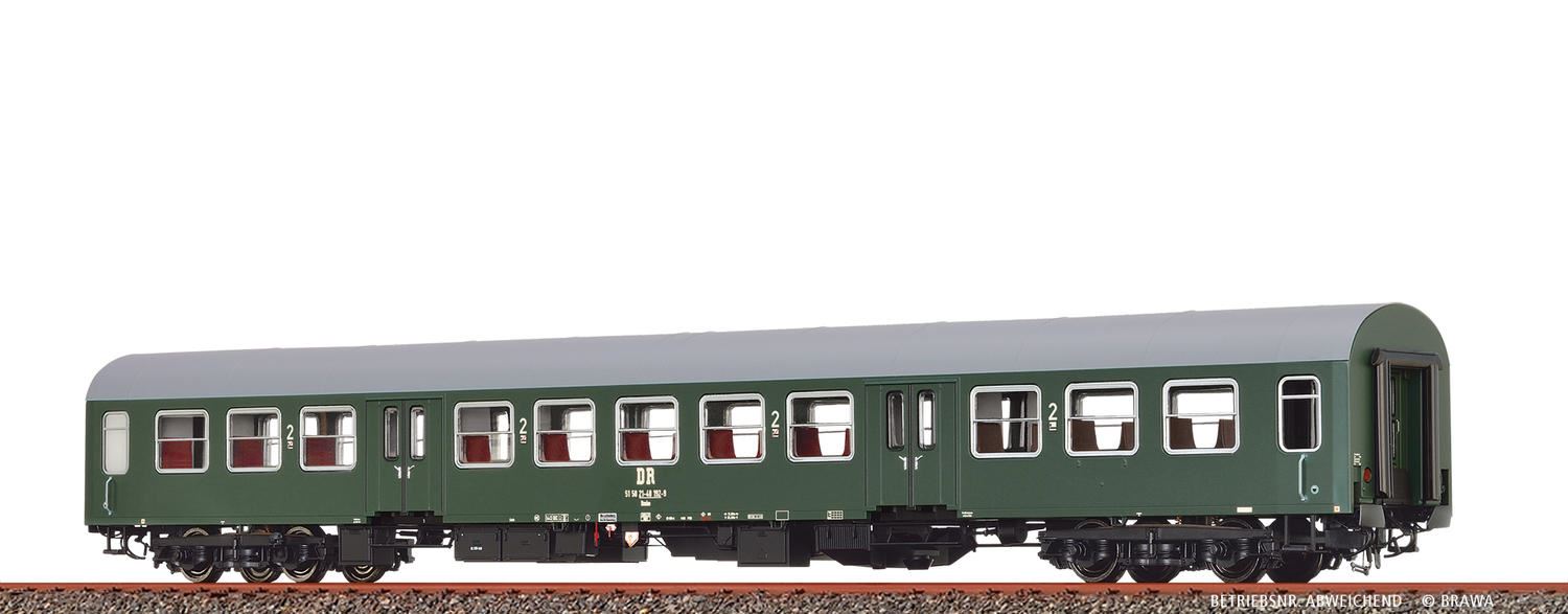 H0 Reisezugwagen Bmh DR, Epoche IV Betriebsnummer: 51 50 21-40 046-7 LüP: 303mm Inneneinrichtung 2212 Innenbeleuchtung nachrüstbar Kurzkupplungskinematik 2187 Tauschsatz für Wechselstrom 2222 Wechselstromschleifer nachrüstbar MODELLDETAILS: Vorbildgerechte Nachbildung der Drehgestelle; Vorbildgerechte Inneneinrichtung; Bedruckte Fensterrahmen; Gummiwulst am Übergang gefedert; Nachbildung der Luftheizung am Wagenboden; Frei stehende Griffstangen Hersteller: Brawa