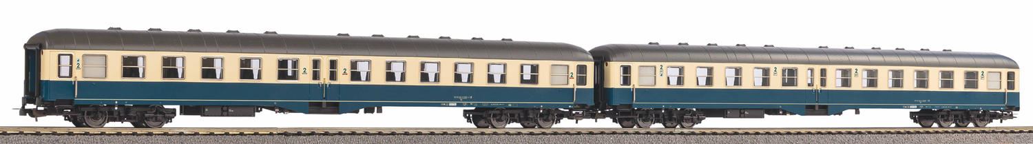 H0 2er Set Mitteleinstiegswagen DR Ep.IV Länge über Puffer: 606mm Mindestradius: 358mm (Innen-)Beleuchtung: Innenbeleuchtung nachrüstbar mit #56280 Kupplung: NEM Schacht + Kurzkupplungskulisse Tauschradsätze AC: 56060 Hersteller: Piko