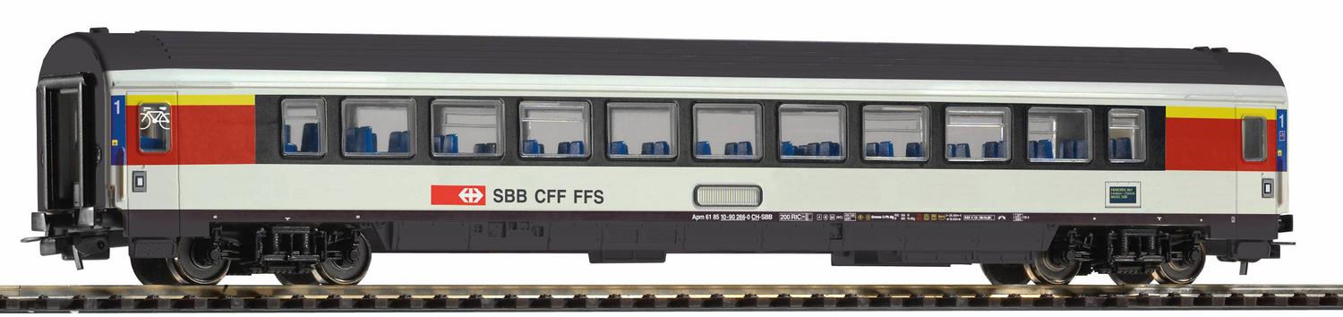 H0 Personenwagen 1. Klasse "Newlook" SBB Ep.VI Länge über Puffer: 268mm Mindestradius: 358mm Kupplung: NEM Schacht + Kurzkupplungskulisse Tauschradsätze AC: 56060 Hersteller: Piko