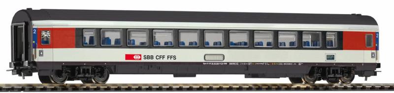 H0 Personenwagen 2. Klasse "Newlook" SBB Ep.VI Länge über Puffer: 268mm Mindestradius: 358mm Kupplung: NEM Schacht + Kurzkupplungskulisse Tauschradsätze AC: 56060 Hersteller: Piko