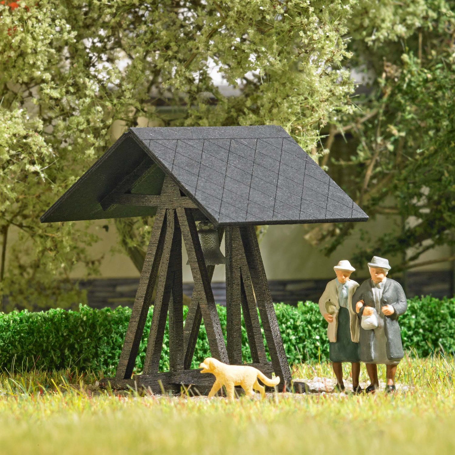 Bausatz aus echtem Holz für einen freistehenden Glockenstuhl mit Glocke. Das Originalvorbild steht am Eingang der Gedenkstätte Kapelle Peenemünde auf der Insel Usedom. <br><br>Größe: 37 x 32 mm, 39 mm hoch.