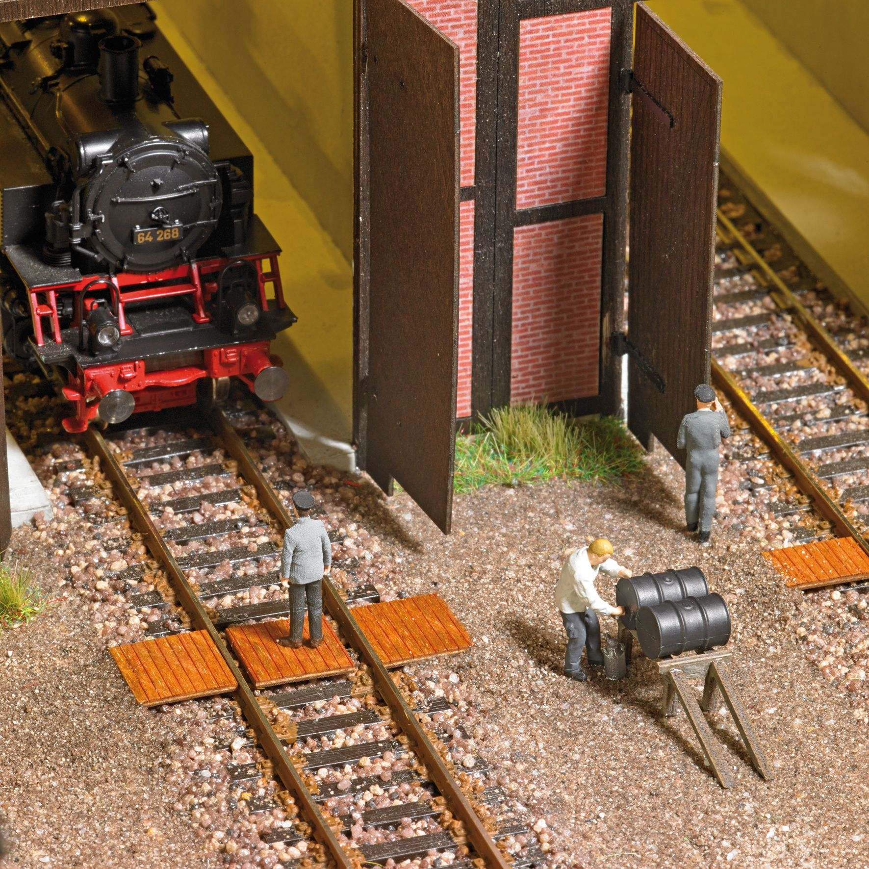 Für einen trittsicheren Fußgängerverkehr über die Gleise dienen diese Holzbohlen aus echtem Holz. Im Set sind drei verschiedene Bohlenbreiten für die Verlegung mehrerer Überwege enthalten. Größen: 34 x 18 mm, 34 x 14 mm, 34 x 10 mm.