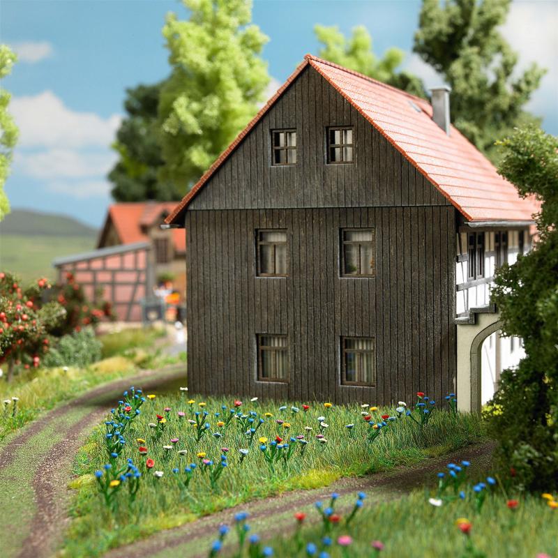 Sommerwiese mit hochwachsender Wildgrasmatte (190 x 190 mm) und vielen super-realistischen »Natur Pur« Sommerblumen in verschiedenen Farben: weiß, gelb, orange, rot, verschiedene violett Farbtöne, pink und blau sowie 30 Kornblumen und 30 Klatschmohnpflanzen. Insgesamt über 150 Blumen und Pflanzen zum Zusammenbauen. Inklusive ausführlicher Anleitung.