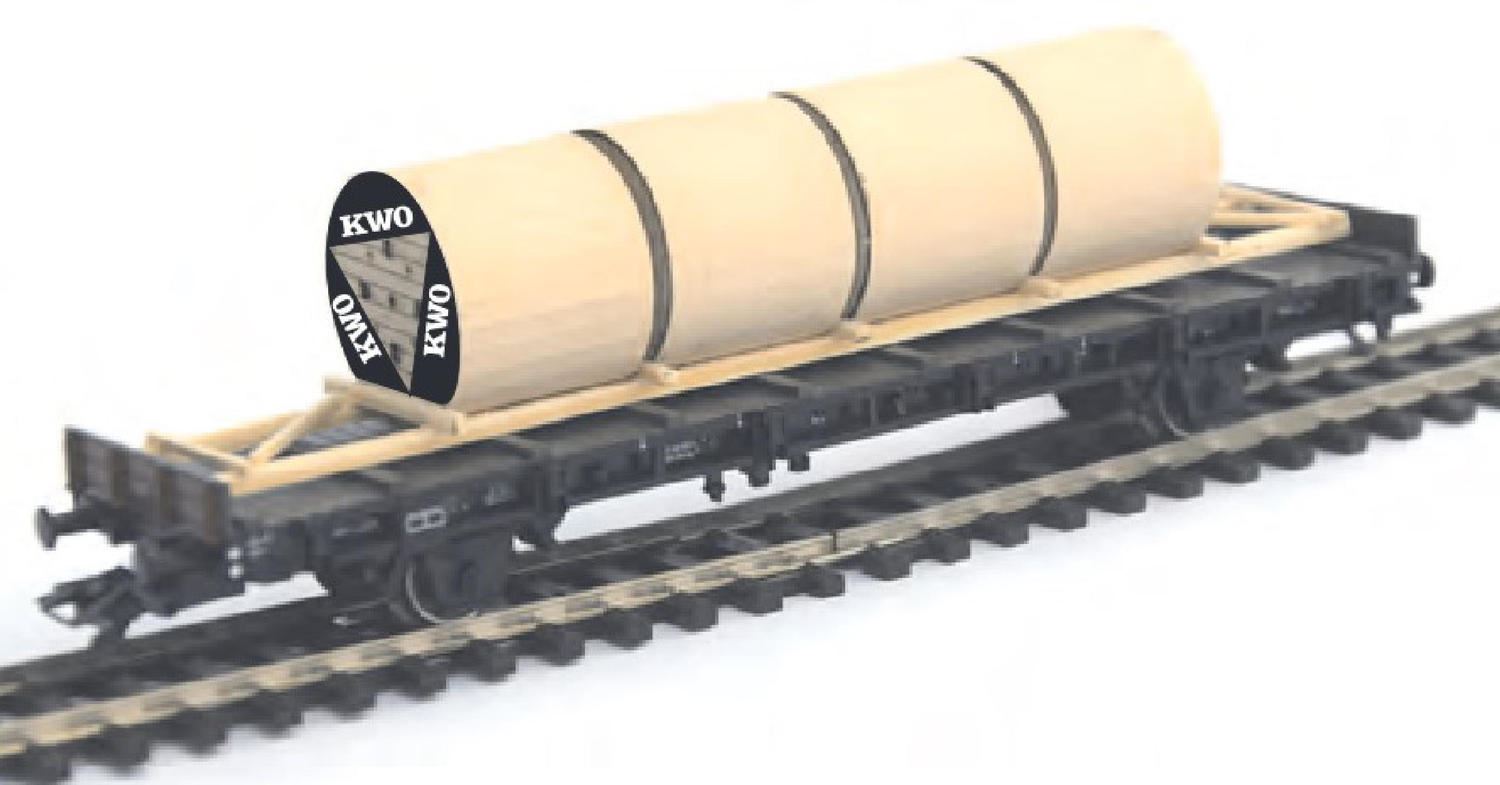 aus echtem Holz gefertigt, auf Transportgestell gelagert und dezent gealtert, beidseitig aufwändig und vorbildgetreu bedruckt, passend für alle gängigen 2-achsigen Flach-, Niederbord- und Rungenwagen; Länge: ca. 140 mm