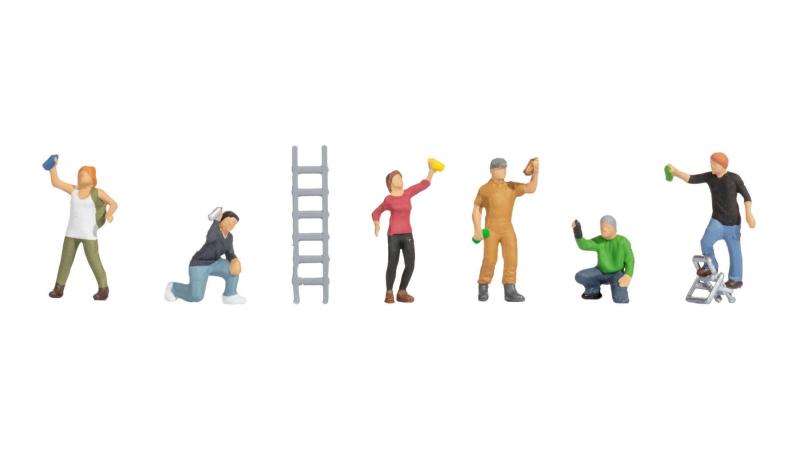 Mit dem Figuren-Set Graffity Sprayer von NOCH bringen Sie ein Stück urbaner Kultur auf Ihre Modellbahnanlage. Dieses Set enthält verschiedene Figuren, die in Aktion gezeigt werden – beim Sprayen, mit einer Leiter oder sitzend. Ob an Mauern, Zügen oder Wänden, diese Miniaturen fangen die Dynamik und den künstlerischen Ausdruck der Street-Art-Szene ein. Ideal für Stadtlandschaften, Bahnstationen oder Industriegebiete, fügen die Graffity Sprayer Ihrer Modelllandschaft realistische und kreative Elemente hinzu. Die detaillierte Gestaltung und die authentischen Posen machen dieses Set zu einem echten Hingucker. Hersteller: Noch