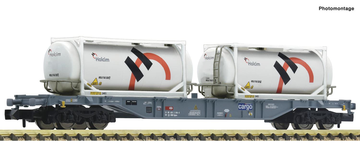 Containertragwagen, Bauart Sgnss, der Schweizerischen Bundesbahnen. Beladen mit zwei HOLCIM-Tankcontainern Technische Daten: Allgemeine Daten Schacht NEM 355 mit KK-Kinematik Abmessungen Länge über Puffer 123 mm Hersteller: Fleischmann