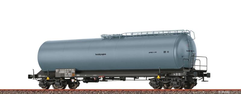 N Kesselwagen Zas-w DR, Epoche IV Betriebsnummer: 35 50 075 2040-4 LüP:102mm Kurzkupplungskinematik MODELLDETAILS: Filigrane Nachbildung der Y-25 Drehgestelle; Präzise Bedruckung und Lackierung; Kurzkupplungskinematik nach NEM-Norm; Vorbildgerechte Bremsanlage Hersteller: Brawa