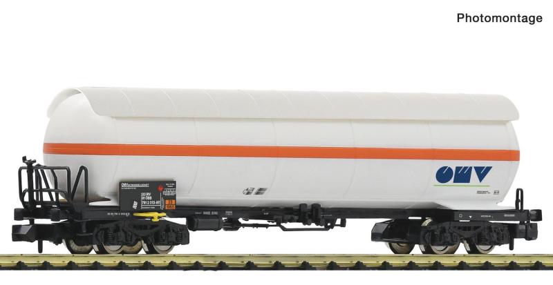 Druckgaskesselwagen „OMV“, Gattung Zags, eingestellt bei den Österreichischen Bundesbahnen. Ausführung mit langem Sonnenschutzdach Technische Daten: Allgemeine Daten Schacht NEM 355 mit KK-Kinematik Abmessungen Länge über Puffer 110 mm Hersteller: Fleischmann