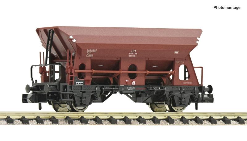Selbstentladewagen ohne Schwenkdach, Gattung Otmm 64 ■ Feine Auftritte, Leitern und Bühnengeländer ■ Mit vielen separat angesetzten Steckteilen ■ Ausführung mit schwarzem Fahrwerk Technische Daten: Allgemeine Daten Schacht NEM 355 mit KK-Kinematik Abmessungen Länge über Puffer 57 mm Hersteller: Fleischmann