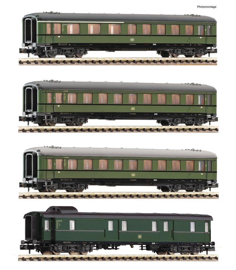 N Wagenset mit vier Schnellzugwagen der Deutschen Bundesbahn Ep.III
