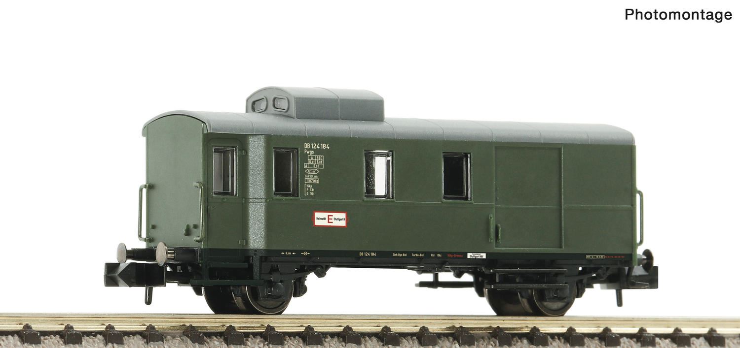 ■ Fein detailliertes Modell mit separat angesetzten Steckteilen ■ Treppe an den Gepäckraumtüren in Originalbreite ■ Ausführung mit Dachkanzel Die Packwagen Pwgs 41 wurden in den 1940er Jahren von der DRB gebaut. Dabei wurde auf Bauprinzipien aus dem Reisezuggepäckwagenbau zurückgegriffen. Die nach dem Zweiten Weltkrieg bei der Deutschen Bundesbahn verbliebenen Wagen wurden sowohl in Personen- als auch in Güterzügen verwendet. Technische Daten: Allgemeine Daten Schacht NEM 355 mit KK-Kinematik Abmessungen Länge über Puffer 64 mm Hersteller: Fleischmann