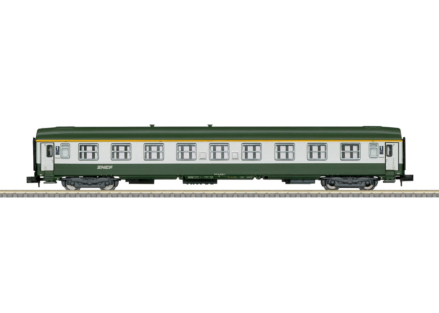 Vorbild: Schnellzugwagen 1. Klasse (A9) der Französischen Staatseisenbahn (Société nationale des chemins de fer français / SNCF). Im Zustand um 1994. Modell: Mit Kinematik für Kurzkupplung. Vorbereitet für den nachträglichen Einbau einer Innenbeleuchtung.Länge über Puffer 153 mm. Die dazu passende Innenbeleuchtung:66616 LED-Innenbeleuchtung.