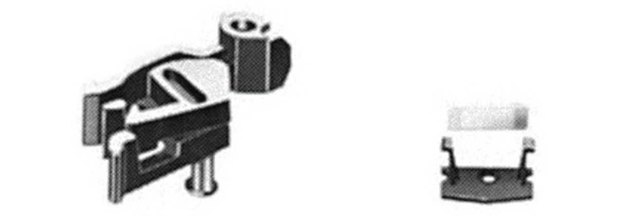 PROFI-Kupplung mit Blatt-Richtfeder und Abdeckplatte (mit langen Haltestegen). Zum Umbau von Fleischmann-Fahrzeugen, in welche die Standard-Kupplung 9521 eingebaut ist. Hersteller: Fleischmann