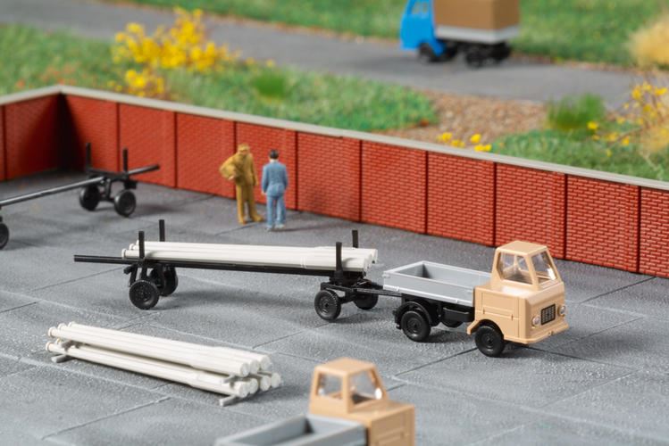 Bausatz. Das fein detaillierte und bedruckte Modell des Kleintransporters Multicar M22 zieht hier in einer neuen Farbgebung einen filigranen Langmaterialanhänger. Die beiliegende Ladung, bestehend aus Spannbetonmasten fu die Straßenbeleuchtung, macht das Gespann zu einer guten Ergänzung des Modells 14 489 Transformatorenhäuschen 66 x 8 x 12 mm Hersteller: Auhagen