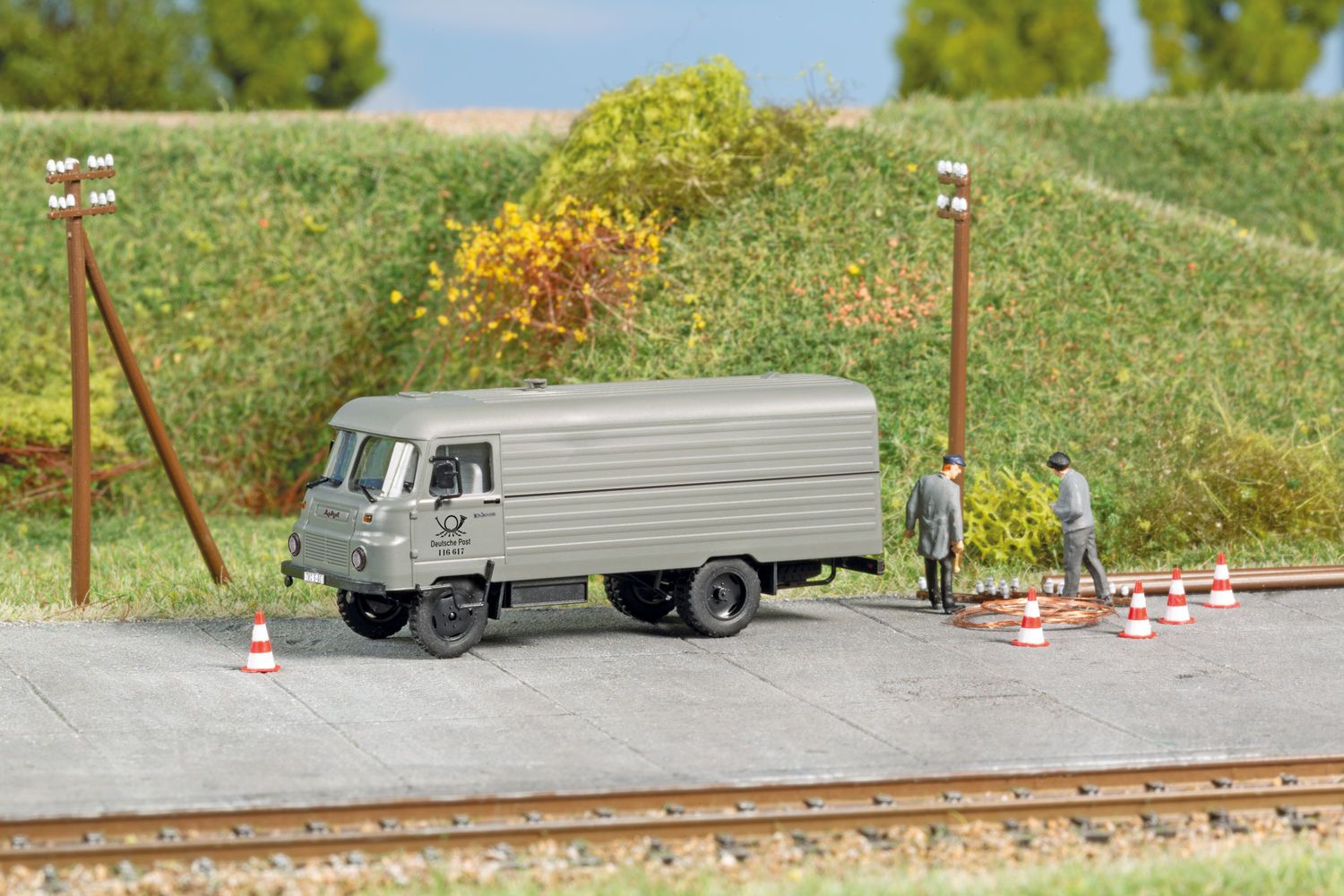 Bausatz. Fein detailliertes Modell mit detaillierten Bedruckungen. Einlenkbar darstellbare Vorderräder, vorbildgerechte Bereifung auf korrekt nachgebildeten Felgen, auf der Hinterachse Zwillingsbereifung und Rollfähigkeit. Zierliche Trittbügel und Rückspiegel, filigrane Scheibenwischer und feine Leuchten ergänzen das Fahrzeug. 53,5 × 21,5 × 24 mm Hersteller: Auhagen
