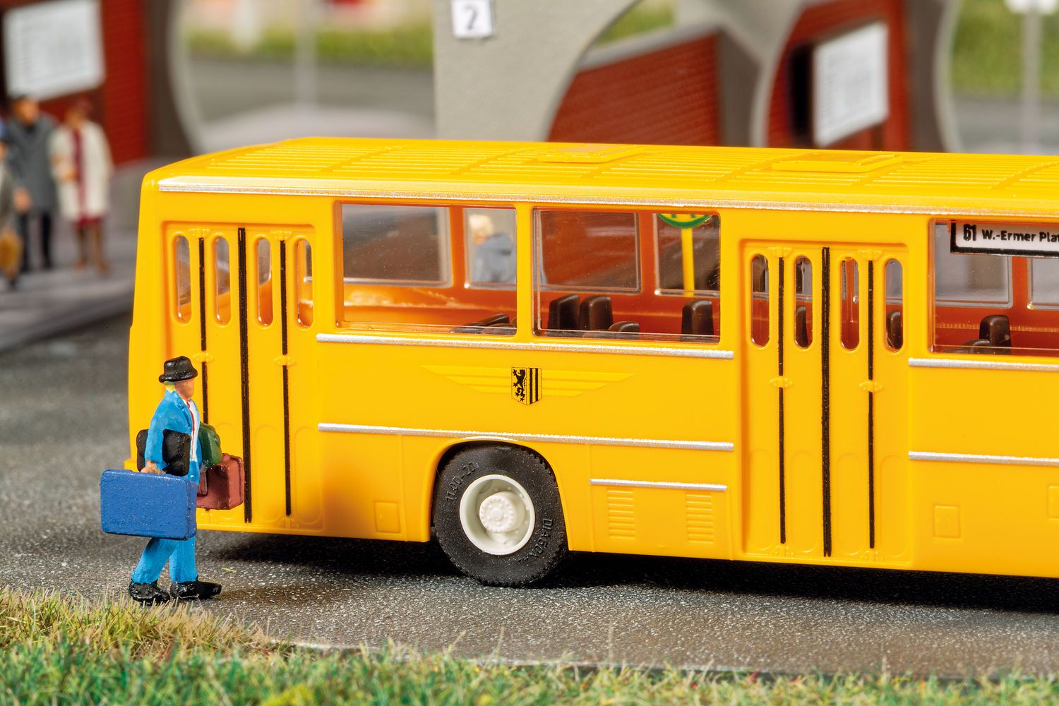 Bausatz. Fein detaillierte und akkurat bedruckte Modellnachbildung des dreitürigen Stadtomnibus „260“ des ungarischen Herstellers Ikarus. Bündig einzusetzende Scheiben sowie einzeln zu montierende transparente<br>Leuchten, vorbildgerechte Bereifung und Rollfähigkeit zeichnen das Fahrzeug aus. Einlenkbar darstellbare Vorderräder sowie eine zum Selbstbemalen beiliegende Fahrerfigur unterstützen die Gestaltung realistischer Szenen. 92 × 21 × 25 mm Hersteller: Auhagen