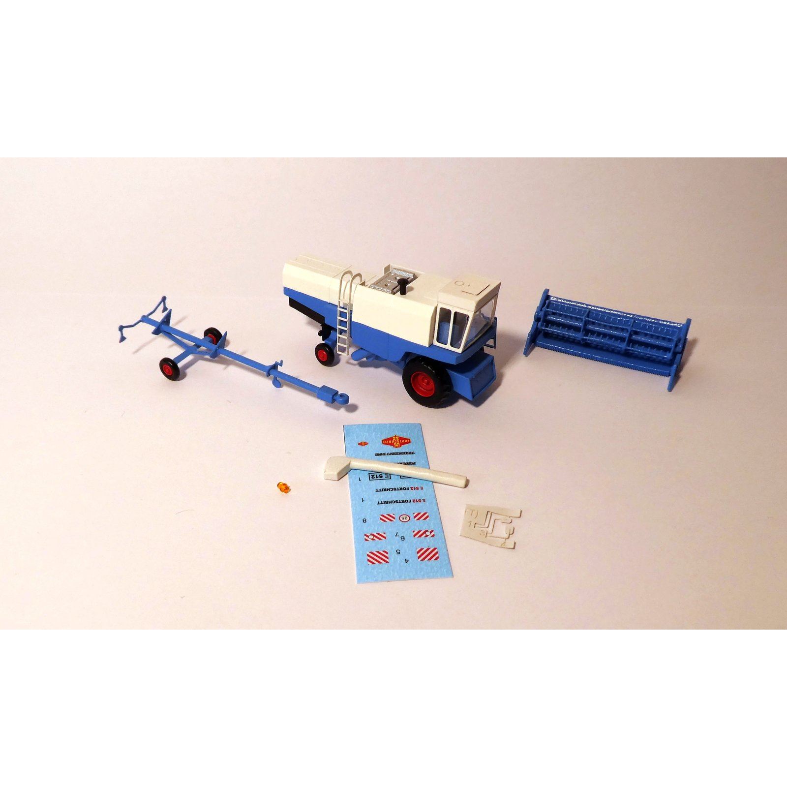 Mähdrescher E 512 Fortschritt mit Hänger für Schneidwerk, geschlossene Kabine, blau Neukonstruktion, additive Fertigung, Außenspiegel, Rundumleuchte und Fortschritt- Decals zur Beschriftung liegen bei Hersteller: TT-Koch