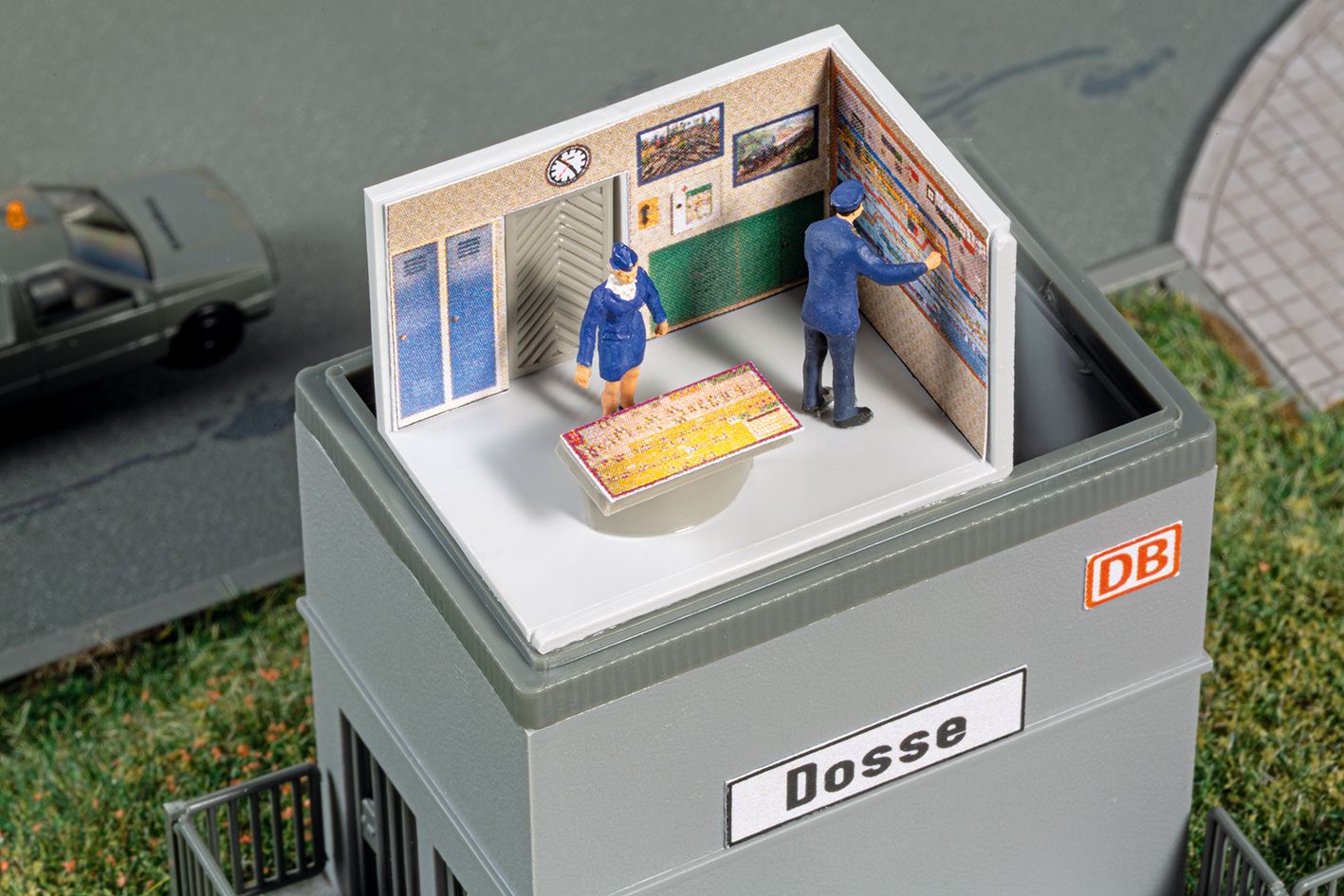 Passend zum Bahnhof Dosse Art. 13357, ergänzt dieses moderne Stellwerk das Ensemble zeitgemäßer Bahngebäude. Das kompakte Gebäude besitzt eine Inneneinrichtung, die durch große Fenster gut sichtbar ist. Damit eignet sich das Modell ideal zur Ausgestaltung von Bahnhöfen und Streckenabschnitten mit aktuellem Charakter. 64 x 48 x 72 mm