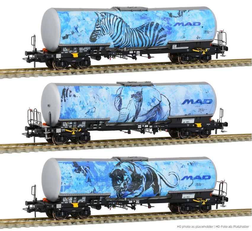 TT 3tlg. Set Kesselwagen Zacns Ep.VI Zebra, Elefant, Panther