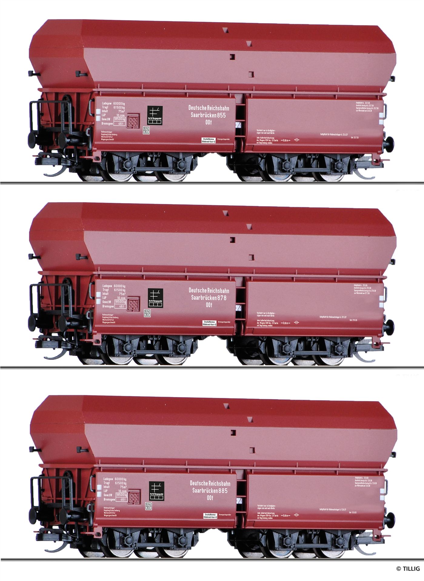 TT Güterwagenset der DRG, bestehend aus drei Selbstentladewagen OOt Saarbrücken, Ep. II