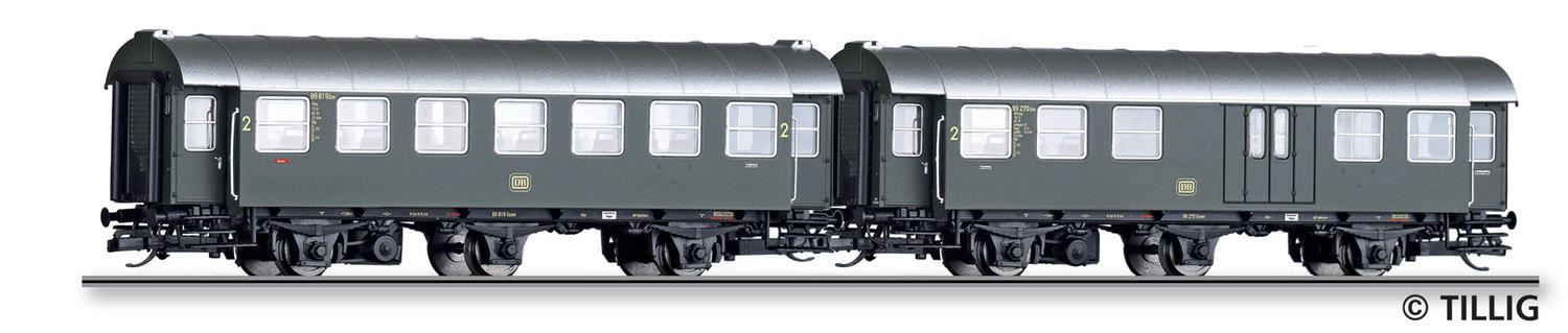 TT Reisezugwagen-Paar der DB, bestehend aus einem 2. Klasse Reisezugwagen und einem 2. Klasse Reisezugwagen mit Packabteil, Ep. III