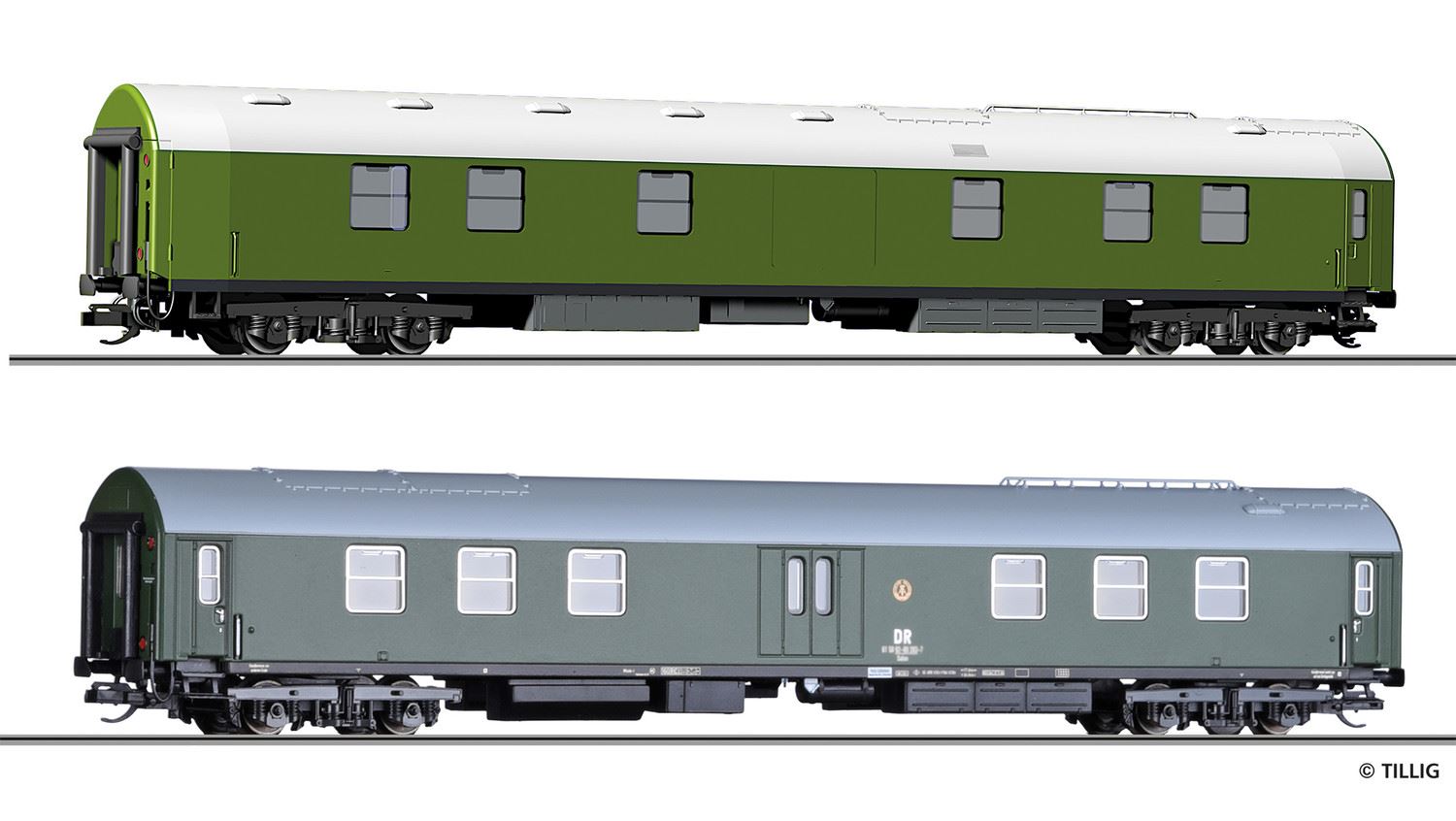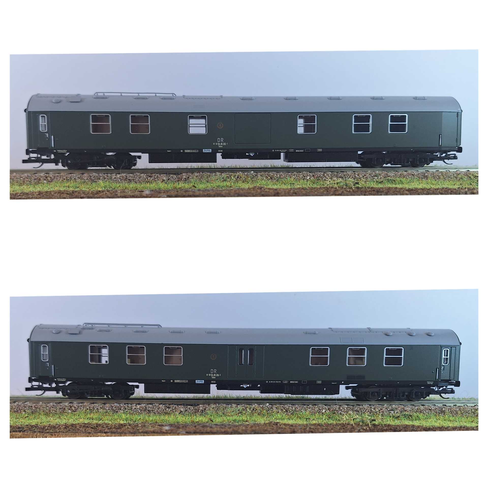 TT Reisezugwagenset „Salonwagenzug 5“ der DR Ep.IV, bestehend aus einem Salonautotransportwagen und einem Maschinen-Gepäckwagen