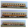 TT Reisezugwagenset „Städteexpress“ der DR, bestehend aus einem Reisezugwagen Typ Y/B70, einem Speisewagen und einem Reisezugwagen Bauart Halberstadt, Ep. IV LüP: 583mm mit Innenbeleuchtung nachrüstbar mit Inneneinrichtung ausgestattet Kupplungsaufnahme und Kurzkupplungskinematik