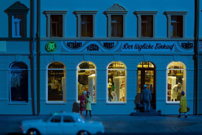 Bausatz. Die funktionsfähigen Leuchtreklame von Auhagen sind in vielen Gebäudemodellen einsetzbar. Mit etwas Erfahrung im Löten und Kenntnisse im Umgang mit elektronischen Bauelementen entstehen stimmungsvolle Szenen.<br>Spannungsversorgung über USB-Anschluss. Hersteller: Auhagen
