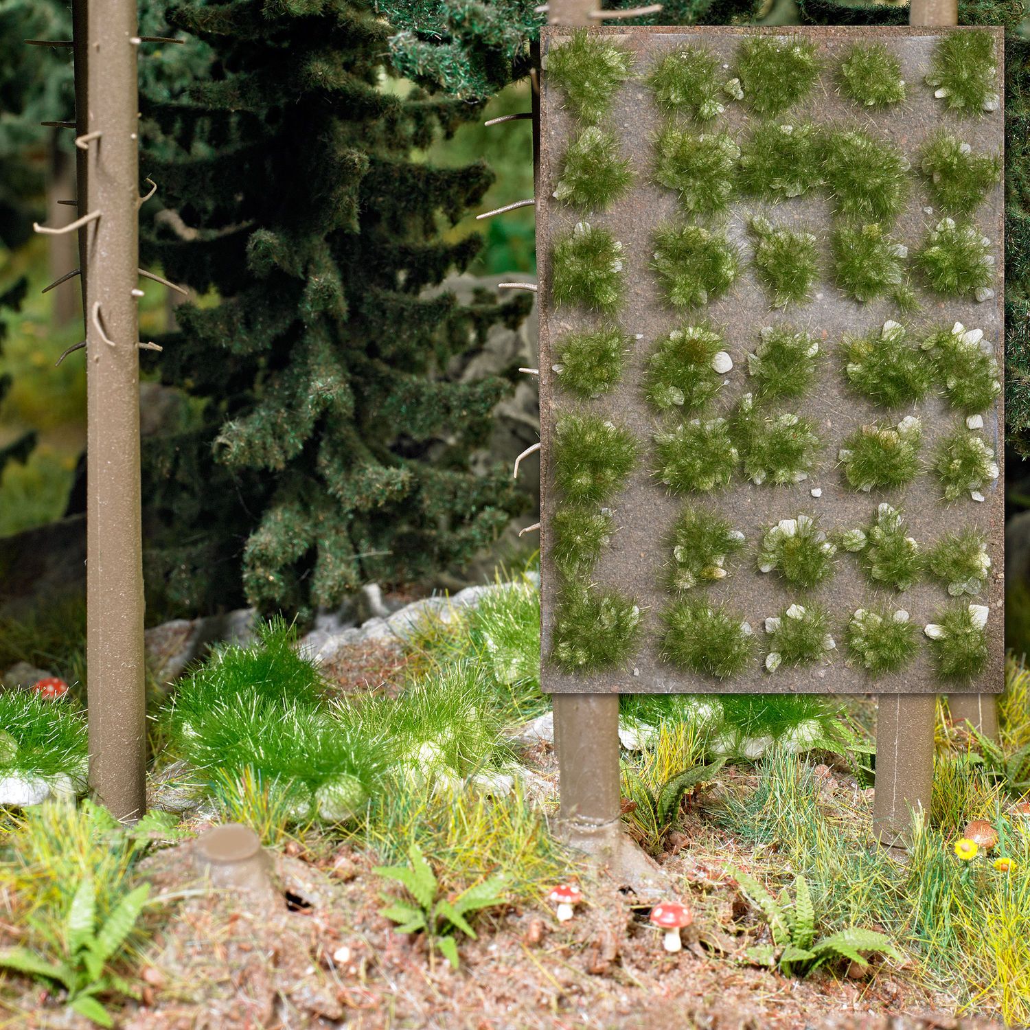 Busch Grasbüschel sind für alle Spurweiten verwendbar und können durch harmonisch aufeinander abgestimmte Farben beliebig miteinander kombiniert werden. Sie sind auf einer Trägerfolie angebracht. Es gibt bereits 16 Grasbüschel Varianten (3511 - 3548). Diese neuen Packungen beinhalten zusätzlich echte Steine, die ganz natürlich um jeden einzelnen Grasbüschel herum verteilt sind. Super Gestaltung für Felder, Wegesrand, Bahndamm oder in der Nähe von Bachläufen. Inhalt: 35 Stück