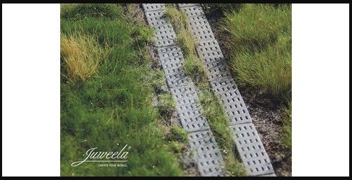 Um in unwegsamen Gelände schnell eine feste Fahrbahn zu bekommen - ohne eine komplette Straße bauen zu müssen, werden in Schnellbauweise die Lochplatten verwendet. Das kann der landwirtschaftliche oder forstwirtschaftliche Weg ebenso sein wie z.B. die Kontrollwege an Grenzanlagen. Ein nachträgliches Bemalen ist mit jeder Farbe möglich; ebenso lassen sie sich problemlos bearbeiten (schleifen, sägen etc.) Besonderheiten: vorbildgerechte Größe (2,5x0,8x0,3cm) Inhalt 60x
