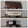 TT Güterwagenset, bestehend aus einem gedeckten Güterwagen der BDZ, einem Kühlwagen der DRG und einem Kesselwagen der ?SD, Ep. II