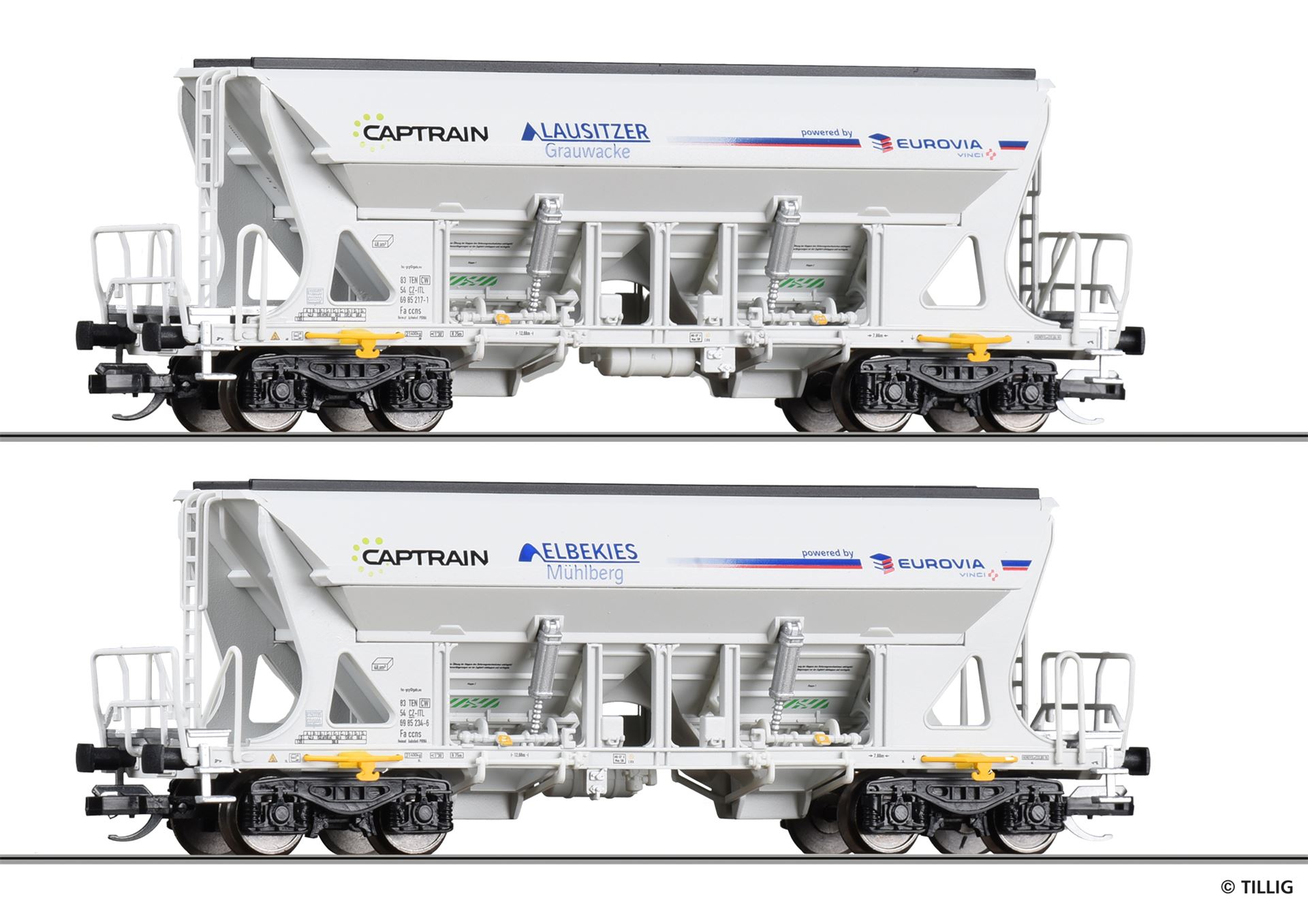 TT Güterwagenset der Captrain / Eurovia, bestehend aus zwei Selbstentladewagen Faccns, Ep. VI LüP: 204mm