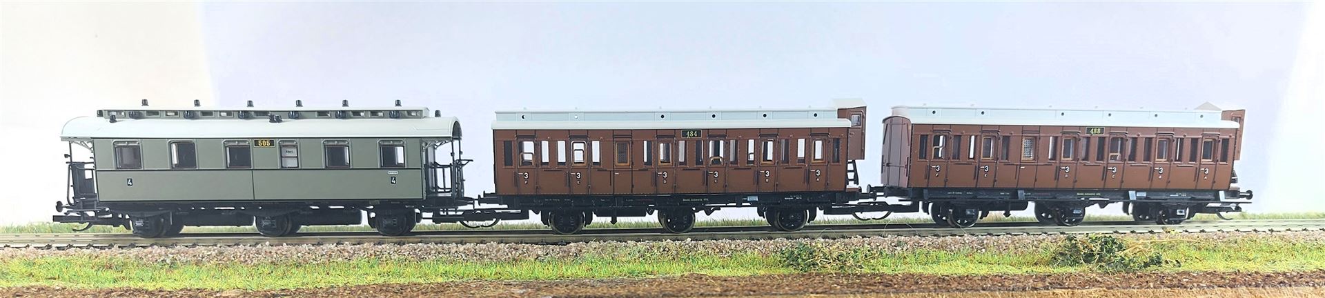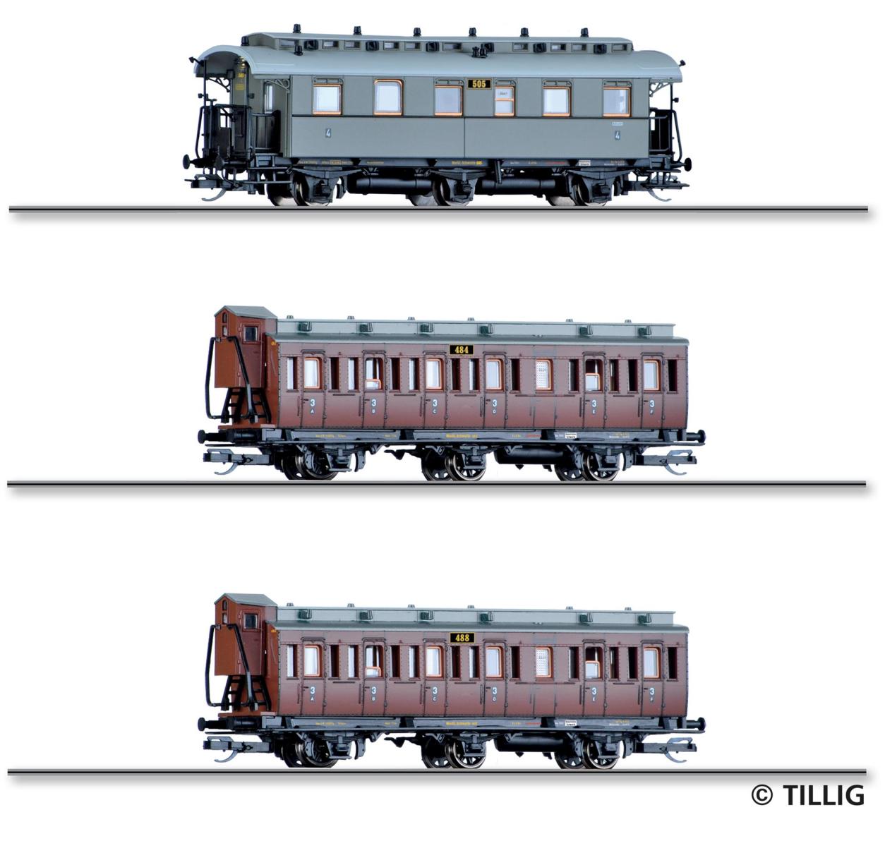 TT Reisezugwagenset Mecklenburgischer Reisezug 2 der M.F.F.E., bestehend aus drei Reisezugwagen, Ep. I - Passend zu 04246 und 01018 - Einmalauflage 2021 Neuheit 2021 mit Innenbeleuchtung nac...