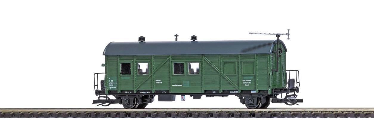 Mindestradius: 310 mm. Bauzugaufenthaltswagen MCi-43. Mit Fernsehantenne zum Anmontieren. DR. Ep. IV, Länge über Puffer: 104 mm.